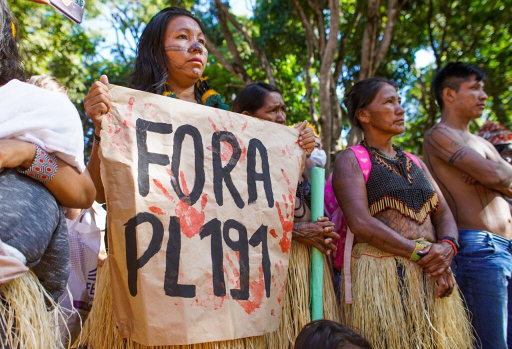O PL 191, proposto pelo governo Bolsonaro , pretende mudar a legislação para permitir a exploração mineral, a construção de hidrelétricas e de grandes projetos de infraestrutura em terras indígenas. O PL 490 também pretende abrir os territórios para grandes projetos econômicos e busca inviabilizar as demarcações. O marco temporal, cujo julgamento vem sendo sucessivamente adiado no Supremo Tribunal Federal (STF), pretende que somente tenham direito à terra os povos que estivessem em sua posse em 5 de outubro de 1988, data da promulgação da Constituição.